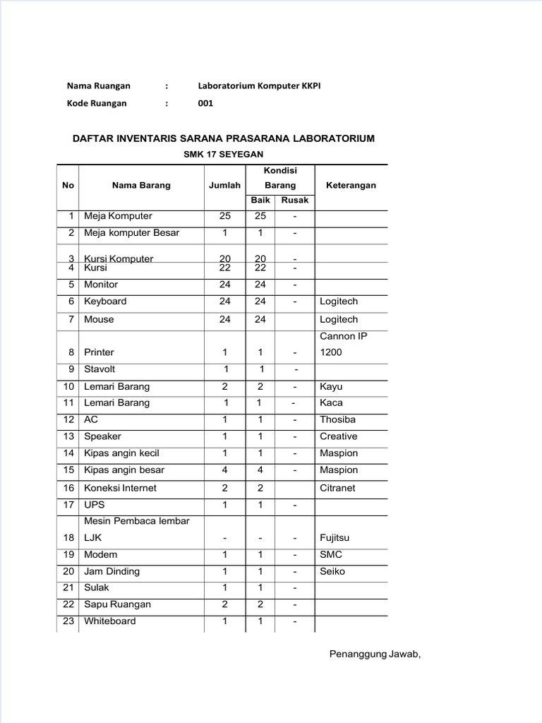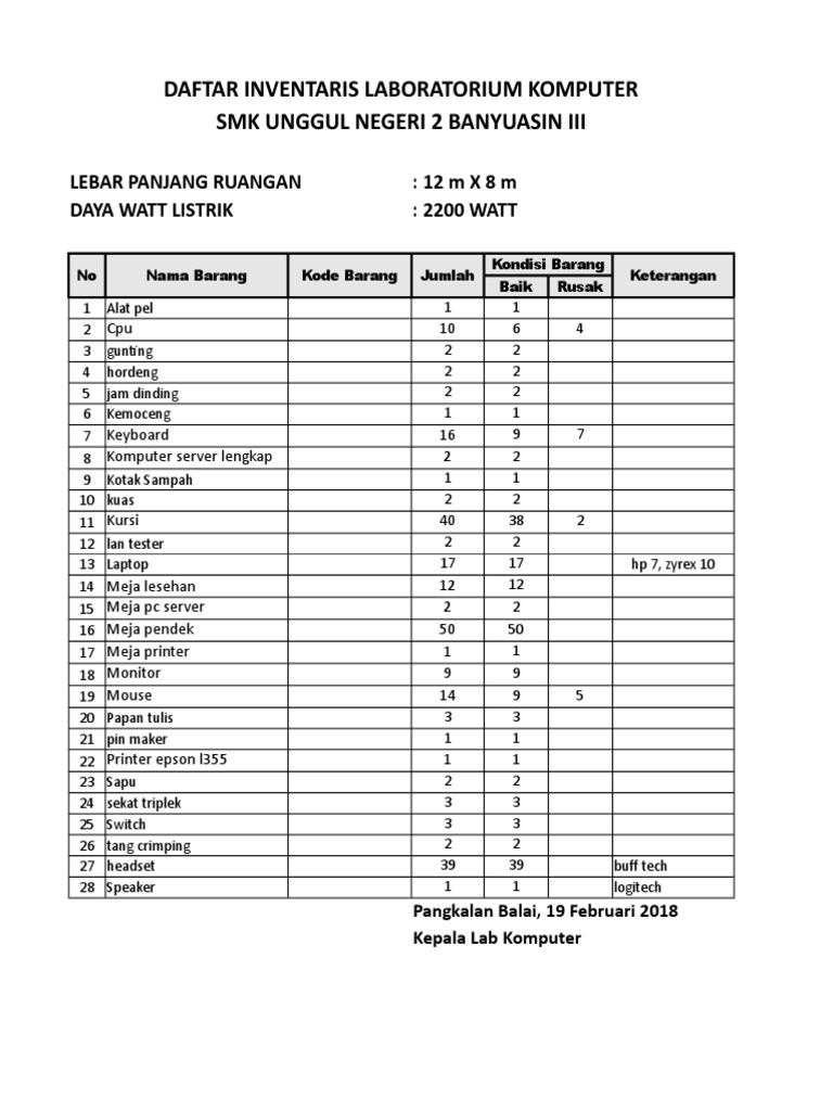 Inventaris Barang Laboratorium Komputer Barang Baru