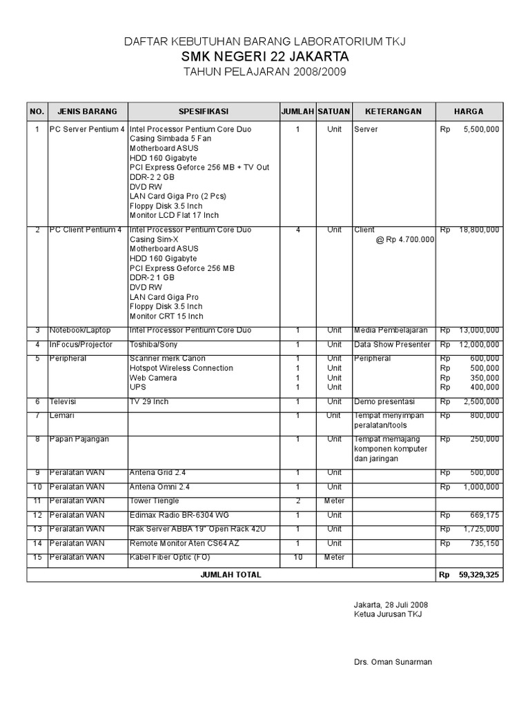 Daftar Kebutuhan Barang Lab Tkj 2008
