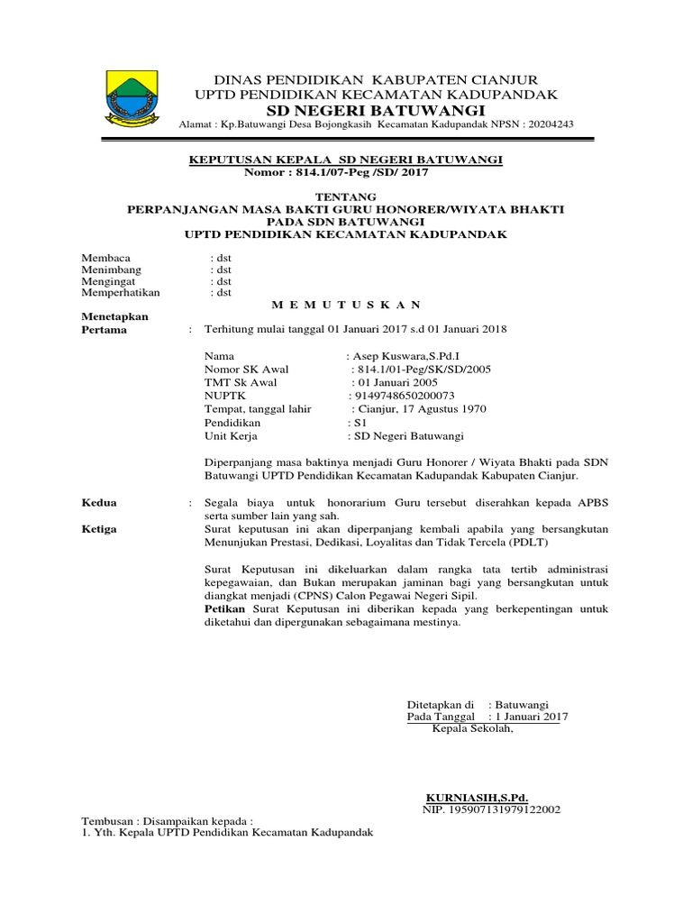 Contoh Sk Perpanjangan Guru Honor Khalifah Isimu Contoh Sk Pengangkatan Guru Honor Gtt Jadi Memang Sk Honorer Ini Tinggal Tunggu Saja Bagai Honorer Gtt Kualifikasinya Atau Pendidikannya Caron Serfass