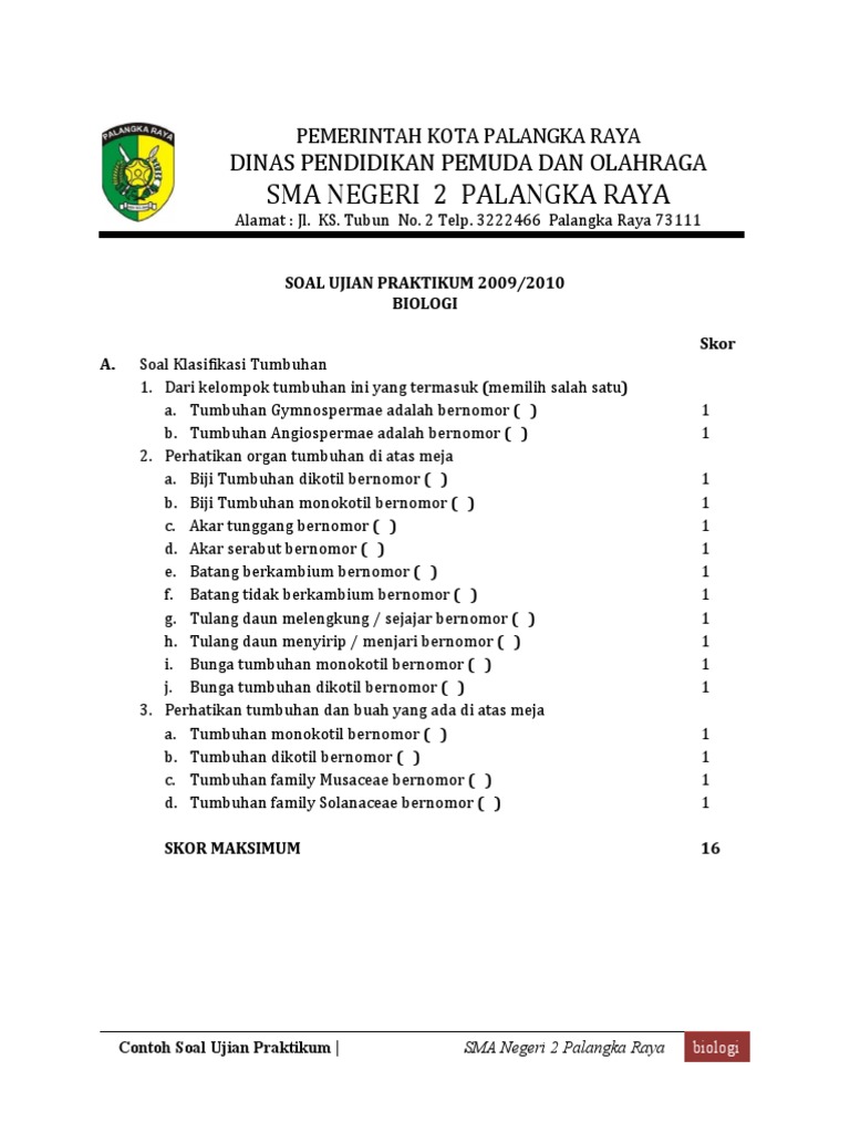 Contoh Soal Ujian Praktikum Biologi Sma Prodi Ipa