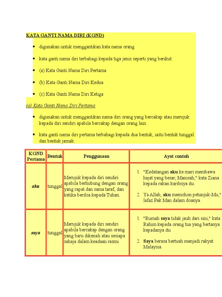 Mari Belajar Bahasa Malaysia Kata Ganti Nama Diri Malay Language Kindergarten Reading Activities Grammar And Vocabulary