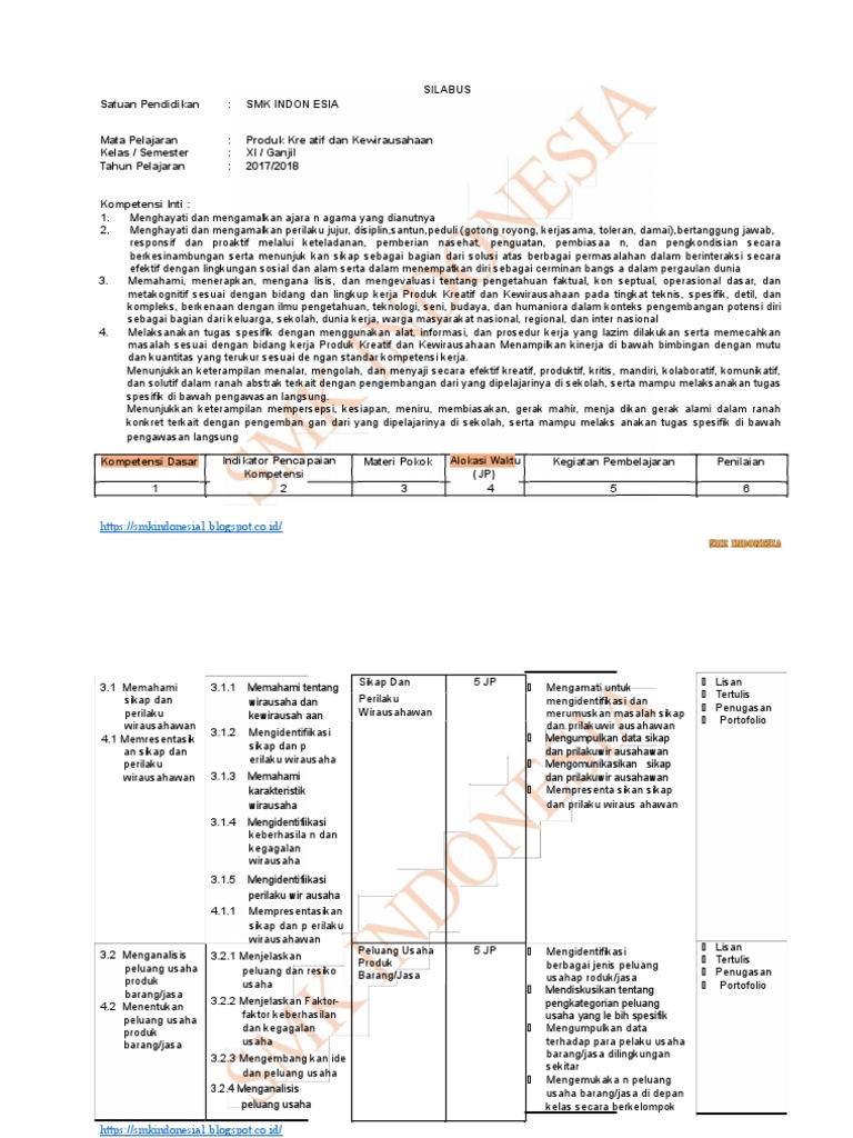 Silabus Produk Kreatif Dan Kewirausahaan Smk Kelas Xi Terbaru Bloggersiana