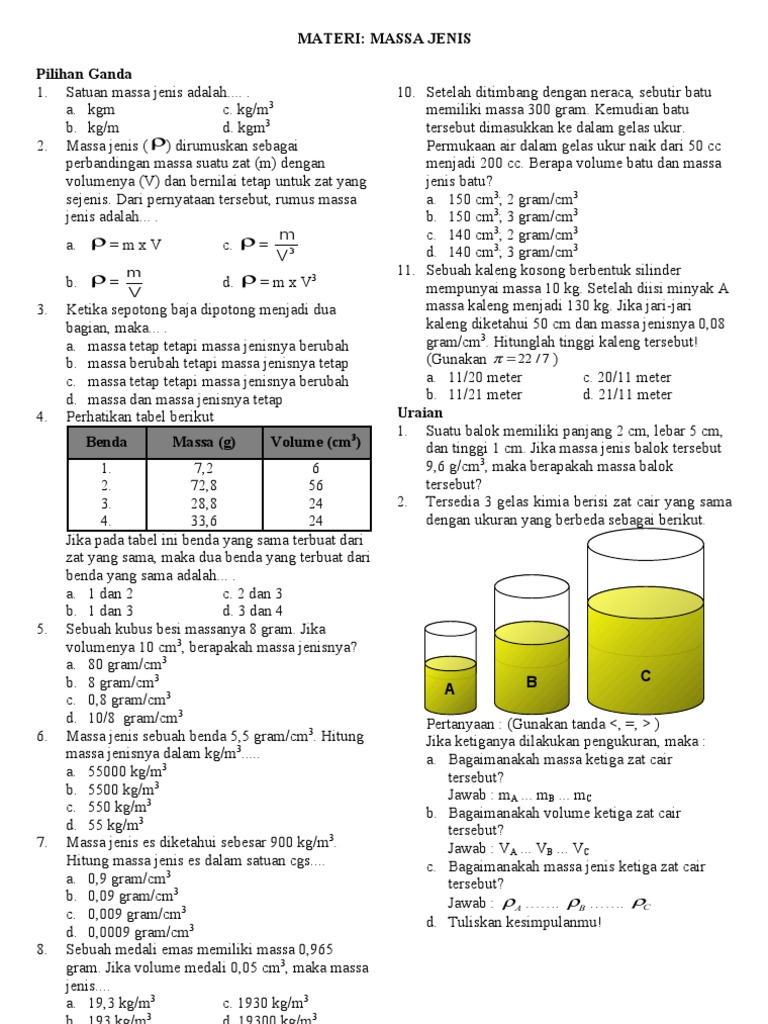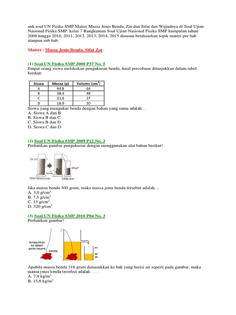 Ank Soal Un Fisika Smp Materi Massa Jenis Benda